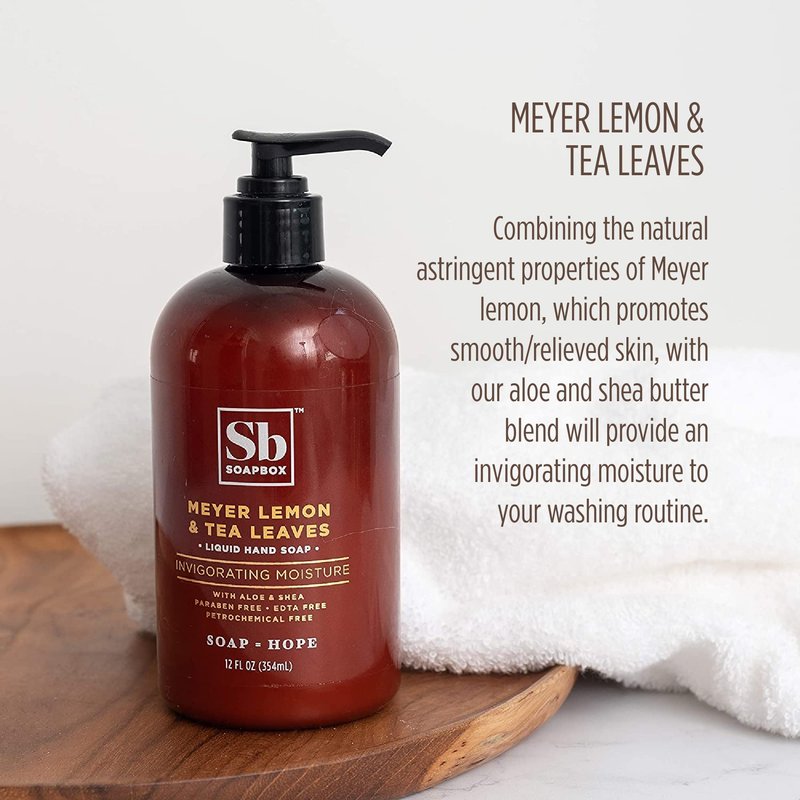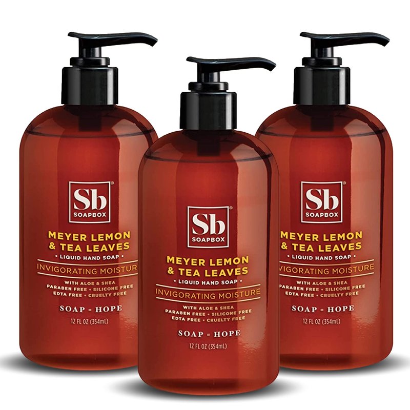 Soapbox Liquid Hand Soap, Meyer Lemon & Tea Leaves - Gentle, Moisturizing Hand Cleanser, Vegan, Cruelty Free Hand Soap for Bathroom and Kitchen, 12oz Pump Bottles (Pack of 3)
