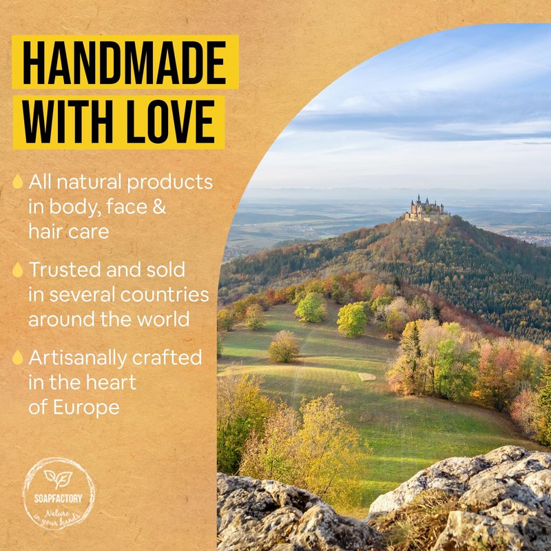 - HANDMADE WITH LOVE: We make every single bar of soap ourselves in small batches in our soap making facility. This way we can guarantee that the quality of each soap bar is exceptional