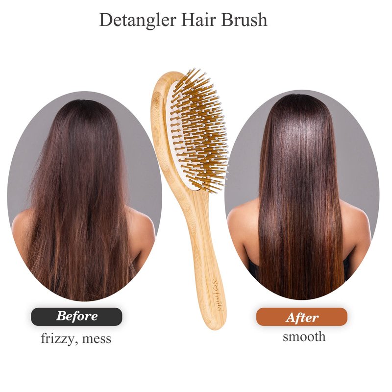 - Eco-Friendly: The main body of our hairbrush is made from bamboo and the cushion is made from natural rubber, which is a more sustainable option for the environment.Bamboo is one of the most sustainable materials on Earth because of its rapid growth cycle. Natural rubber has the attractive properties of hypoallergenic and durable.