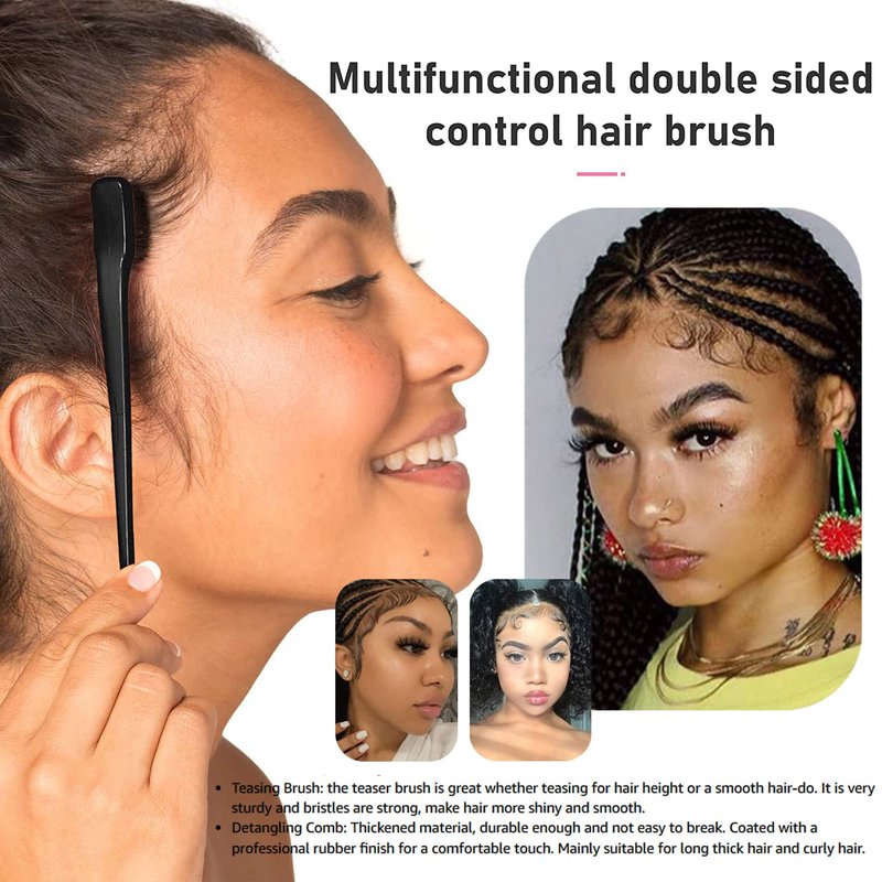 Soft Bristles Use the 100% soft nylon brush side to groom the hairline by gently laying the hairs down against the scalp. Feeling smooth yet firm when brushing, the bristles don't tug or scratch your skin. Use it to help sculpt short, unruly baby hairs and tame flyaways near your hairline for a neat and polished look. It’s also a great tool for dying fine hair. Fine Teeth Perfect for defining and separating even the shortest hairs, the mini comb is great for bangs, hairlines, eyebrows and lashes. The fine teeth are ideal for combing the edges of your hair, styling and defining eyebrows, as well as separating eyelashes. Add your favorite styling gel to the mix to polish up your hairstyle.