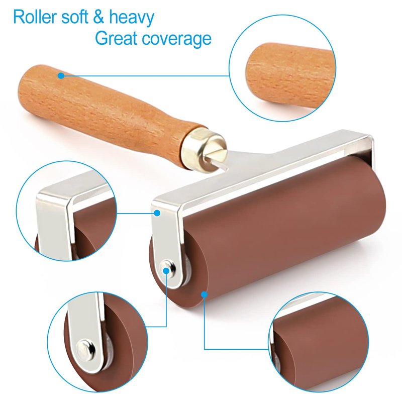 Soft Rubber Roller, Brayer Ideal for Anti Skid Tape Construction Tools, Print, Ink and Stamping Tools(4-Inch, Brown)