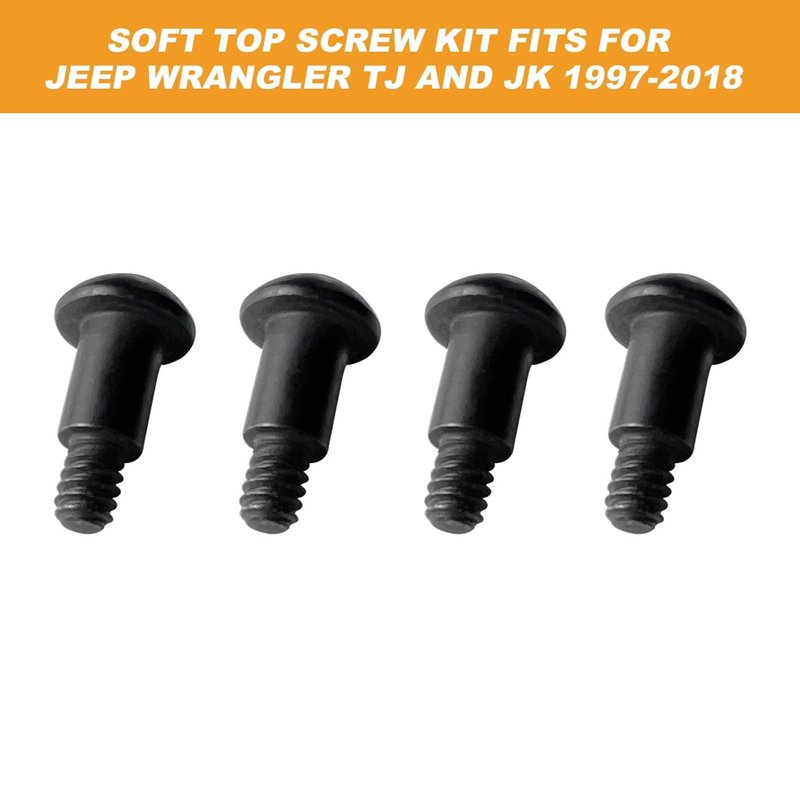 - Package include: This soft top screw kit for jeep JK TJ includes 4 soft top screws.