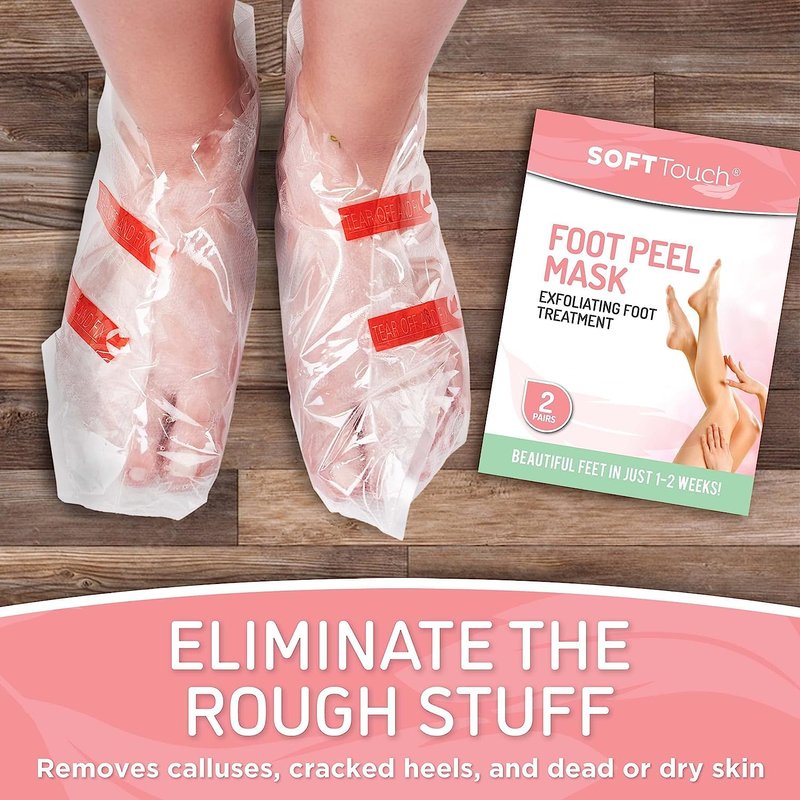 Rejuvenate Your Feet with Soft Touch Foot Peel Mask. Do you have dry, rough, callused feet and heels? Peel your dead skin away with our Soft Touch Foot Peel Mask. A simple and easy process to help your feet look and feel great! 1.Wear the booties for 1 hour (you can wear socks over the booties so you can walk around). 2.Remove the booties and wash your feet. 3.Soak your feet daily for about 10 minutes. 4.Your feet will begin to peel approximately 4-14 days after application. Do Not Use If: You are pregnant or nursing. You are a diabetic. You have open cuts or wounds on your feet. You have skin allergies. You have hyper-sensitive skin. Soft Touch Foot Peel Mask is a revolutionary callus remover that gets rid of dry, cracked and callused feet and gives you back smooth and beautiful feet again. The foot peel socks come in an easy 2 pack. How to Use: Soft Touch Foot Mask is a very easy to apply product. Simply clean and dry your feet, slip your foot into the mask. Seal the mask and leave it on. Let the goodness of the foot mask soak in. After an hour just remove the foot mask and wash your feet gently with soap and water. No need for vigorous scrubbing or a foot file scraper that makes your feet battered. It's a great dead skin remover. One to two weeks after the application, the dead skin will start peeling off. The calluses will be removed. The cracked heels will be soft and supple skin. The foot peel kit will work its magic revealing gorgeous soft new skin underneath on feet and toes. The foot mask lotion is made of powerful yet safe botanical extracts. No artificial additives or chemicals, just the goodness of nature helps you get soft feet again. Active ingredients that exfoliate and moisturize your feet naturally. It's very helpful for your foot care routine. Getting beautiful feet was never easier! Makes a great gift too.