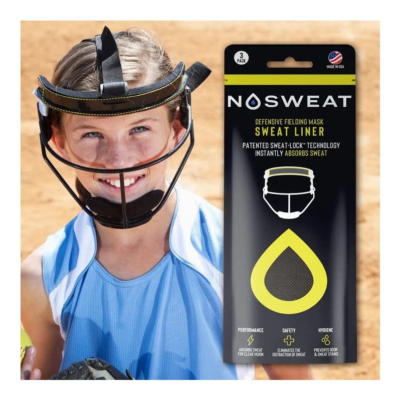 Take your Softball game to the next level! Protect your vision and keep sweat out of your eyes in the field with the NoSweat Fielding Mask Sweat Liner. The NoSweat Fielders mask sweat liners are made with Patented SweatLock Technology. Use these in the field and our helmet liners behind the plate or in the batters box. Our patented technology is made from premium materials, providing maximum comfort and moisture protection without sacrificing breathability. NoSweat keeps the sweat from intruding on your concentration, allowing you to stay laser-focused for every play. NoSweat has been tested on the most grueling fields across the country, giving it a reputation for durability, dependability, and effectiveness like no other liner on the market. With NoSweat, you don’t need to sacrifice performance even when the temperature rises. Don't let sweat get in your way - choose NoSweat today!