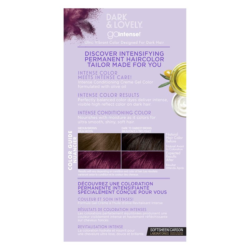 • Go Intense For Fast, Vibrant Results: Get intense color results for African American hair! Go Intense delivers perfectly balanced color dyes that deliver intense visible results on dark hair.