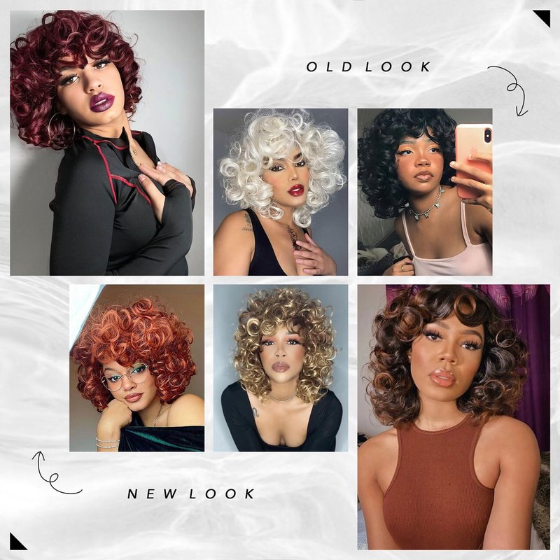 - Material: Short Curly Wigs for Black Women Afro Curly Wig with Bangs,Made of heat resistant fiber hair, which is durable, breathable, soft and natural. Suitable for long-term use.