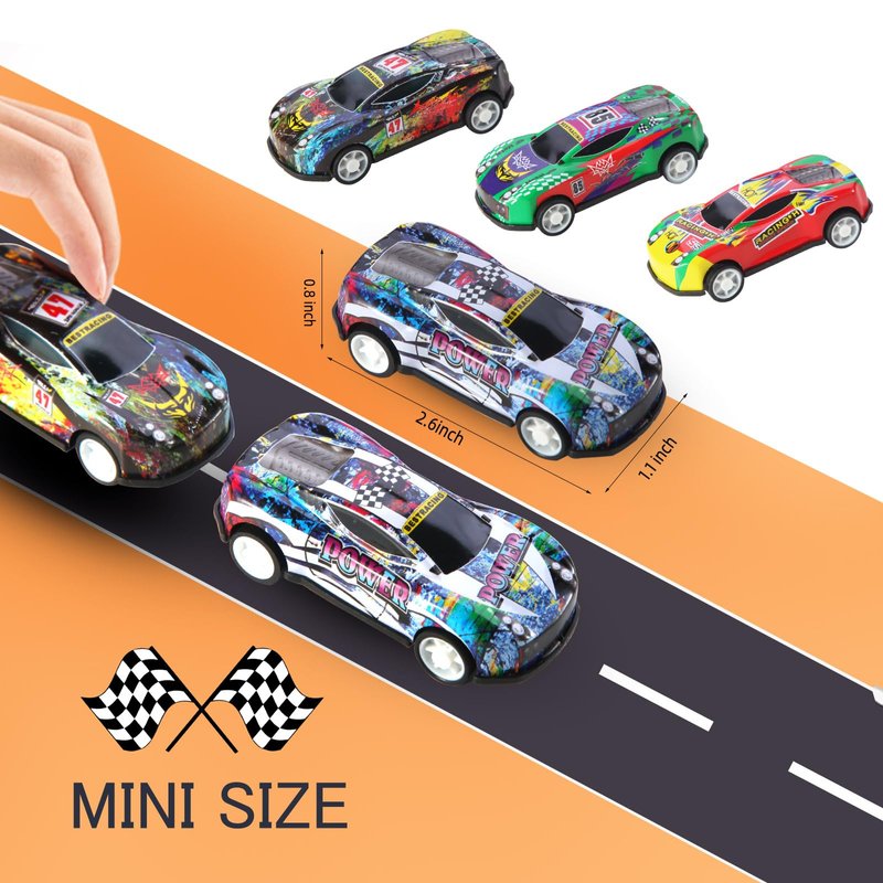 - 【Easy to Play and Safe】These race car party favors are designed with smooth surfaces and curved corners, which do not hurt hands and do not need batteries. Just pull them back and release them, and the mini cars will automatically move forward quickly, and children will feel interesting and happy.