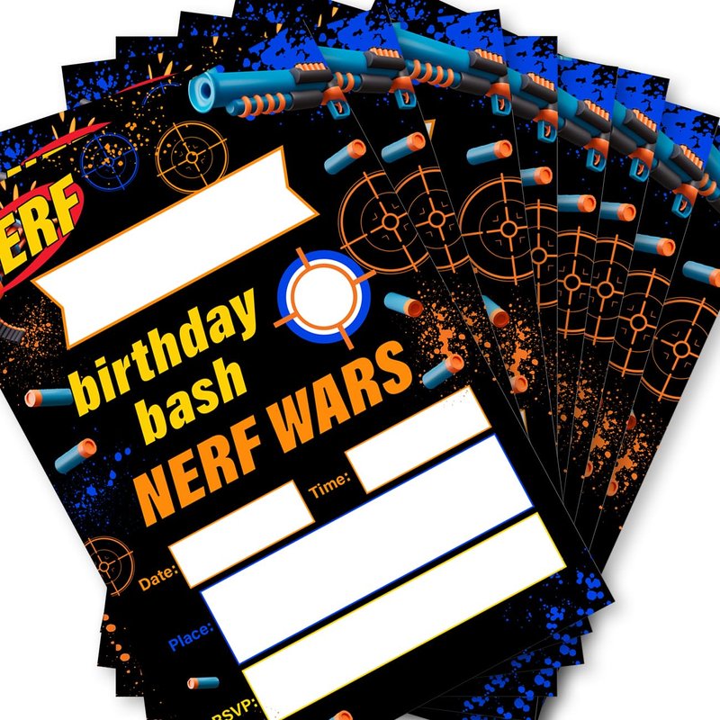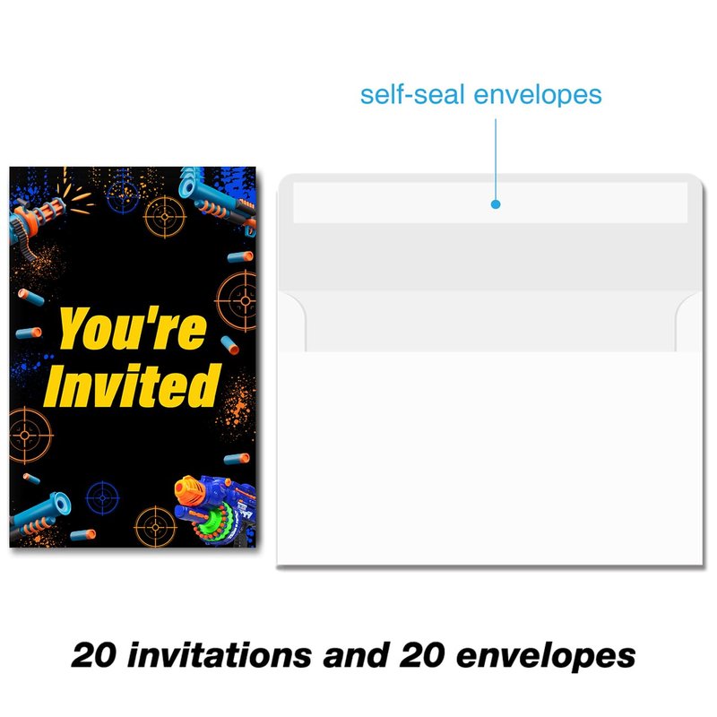 Soiceu Nerf War Birthday Invitations Dart Gun Battle Boys Party Invites with Envelopes Set of 20