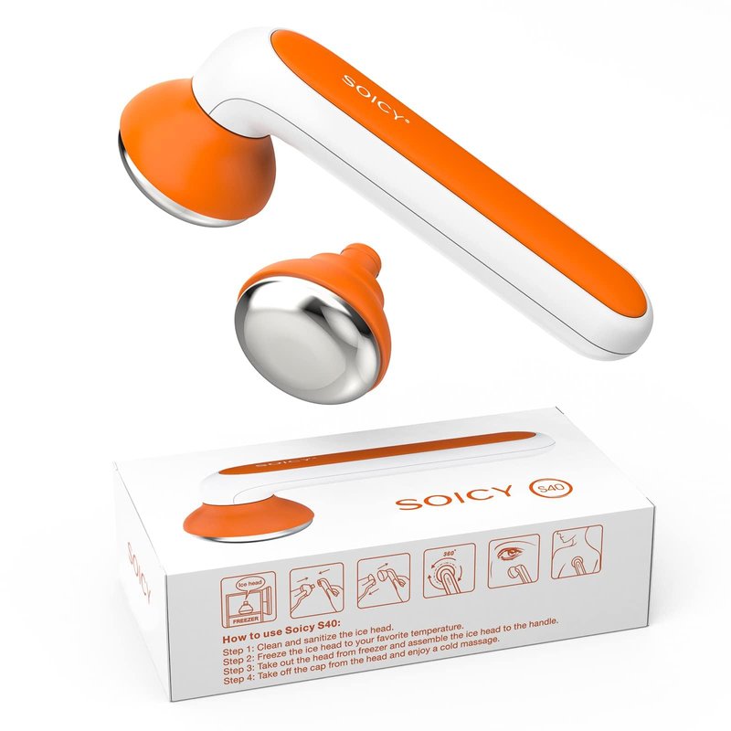 SOICY S40 is a cold massager for the face and body. It can be used as an ice roller or stamp. It provides two stainless steel ice heads which prolongs the cold massage time. The round stainless steel surface is easier to get cold and stay cold than traditional plastic ice rollers. Cold massage is usually used for daily skincare such as face depuff, and shrinking pores. It can also relieve pains like migraine. The detachable ice heads can be stored in the fridge separately which is portable and clean. SOICY S40 is your best travel roller as it's easy to carry and use.