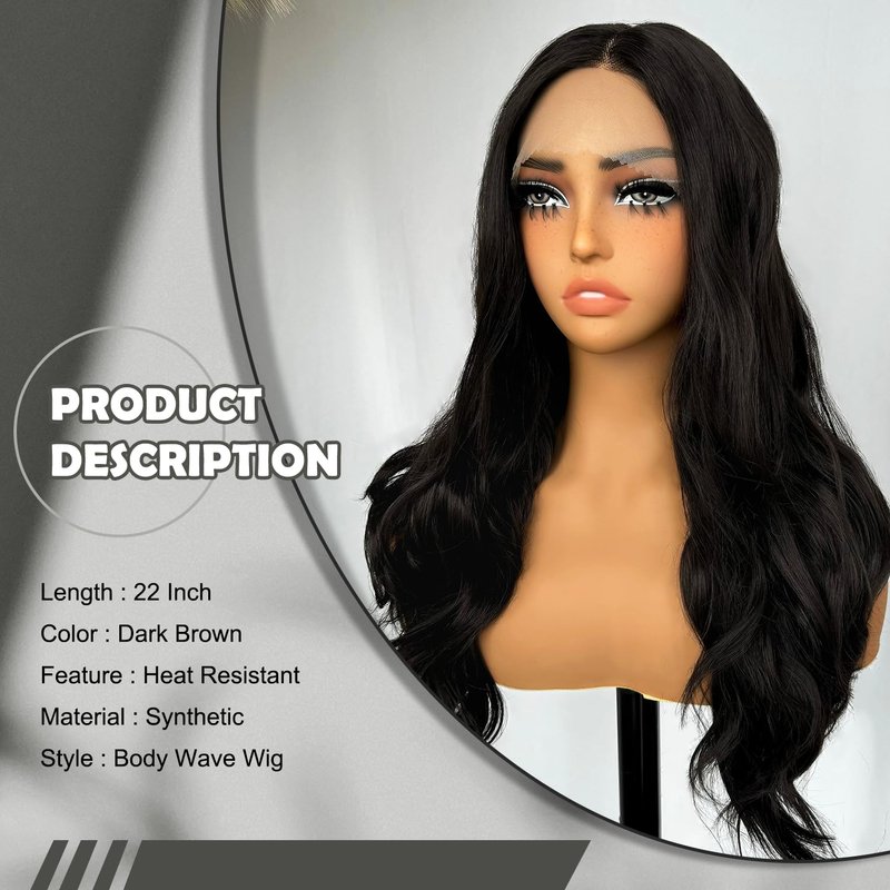SOKU Body Wave Synthetic Lace Front Wigs 22 Inch Middle Part Wavy Wig with Baby Hair Dark Brown Glueless Hair Replacement Wigs for Women Heat Resistant Fiber