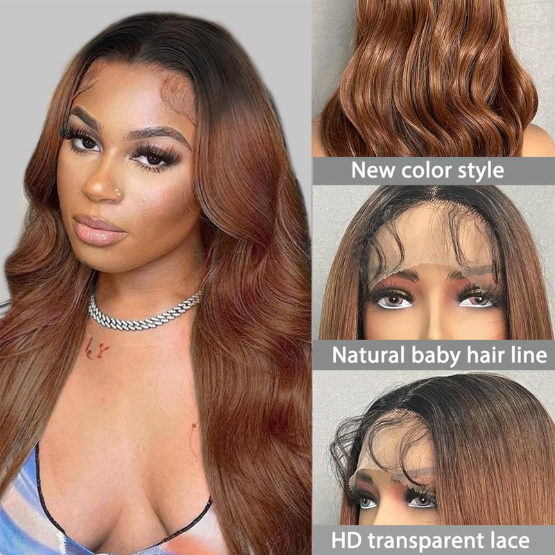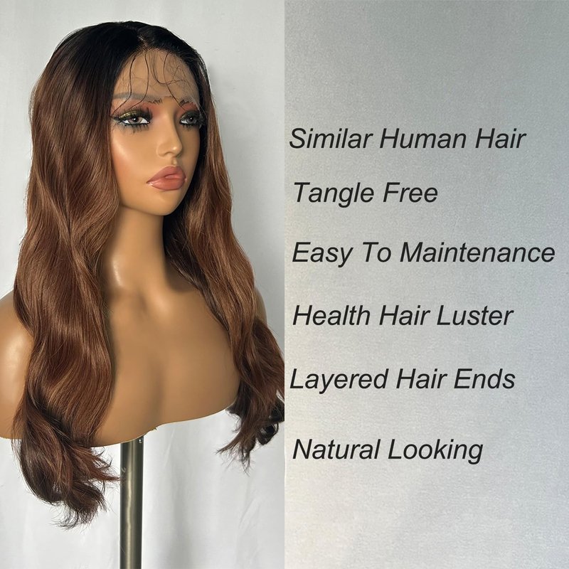 SOKU Body Wave Synthetic Lace Front Wigs 22 Inch Middle Part Wavy Wig With Baby Hair Ombre Brown Glueless Hair Replacement Wigs for Gifts Heat Resistant Fiber