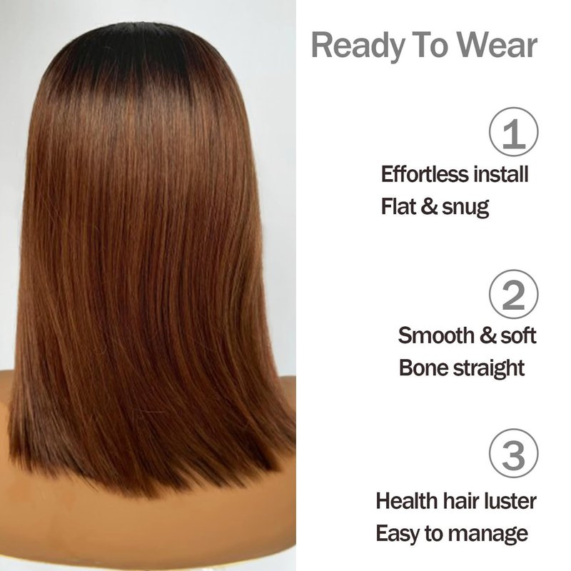- 【Hair information】Color #OP27(ombre brown), suitable for any occasions and a perfect choice for gift. Super soft and lightweight. 12 inch bob style