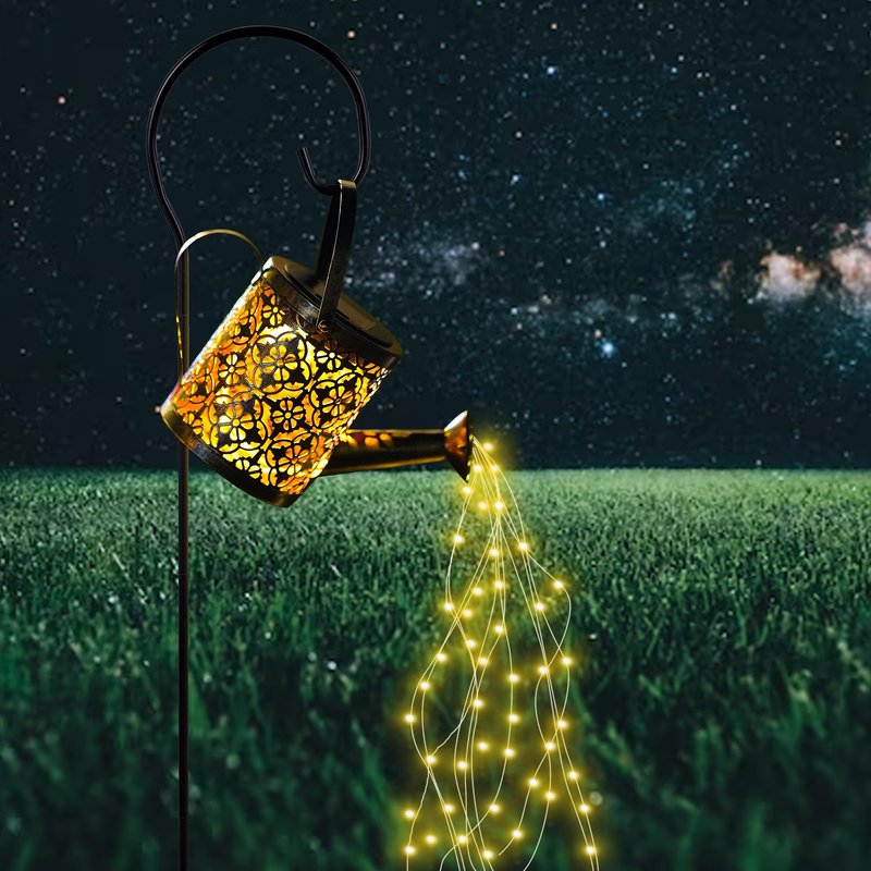 - PERFECT DECORATION: The watering can lights will be an attractive decor in your garden,yard or outdoor during the night, this solar watering can emits warm yellow lights, looking like a string of shining stars poured from the watering can,projecting beautiful patterns on the ground ,to create romantic atmosphere. The garden light can bring you fantastic feeling in your garden, patio, lawn and yard at night.