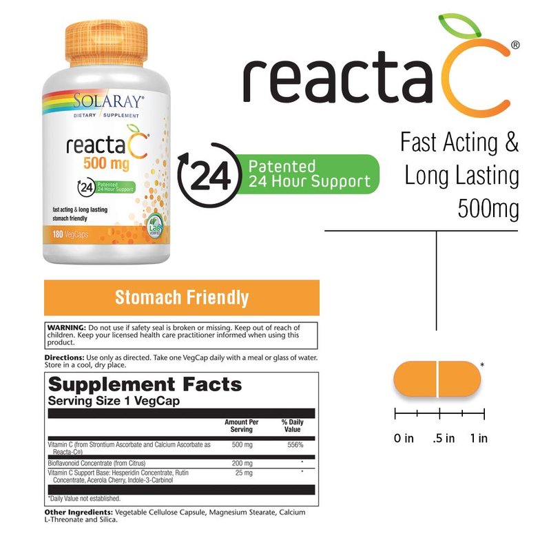 - Powerful Immune Support – Solaray Reacta-C is packed with 500 mg of vitamin C plus 200 mg of bioflavonoid concentrate and a vitamin C support base of hesperidin, rutin, acerola cherry, and Indole-3-Carbinol for enhanced, synergistic support.