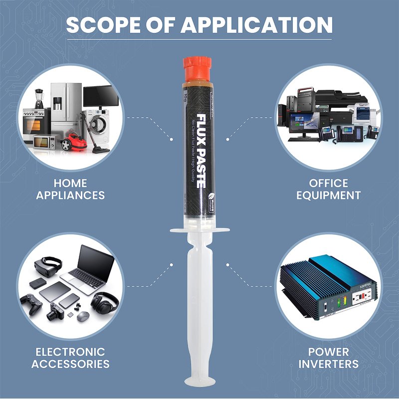 - ✔️ENOUGHT QUANTITY: The package includes 1 syringe of soldering high quality rosin paste flux, 10 grams net weight. Excellent Immersion, wettability, chemical and technical properties. Thus, Enough quantity for your use. Strong soldering and welding power resulting strong low residual joints.