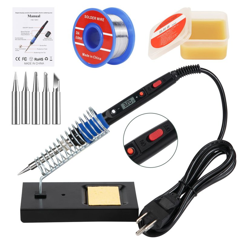 - ✿ 【Must-have Soldering Iron Kit】Kit Includes soldering iron, 5PC Soldering Iron Tip, soldering iron stand, conventional sponge, solder wire, and no-clean solder rosin flux paste.