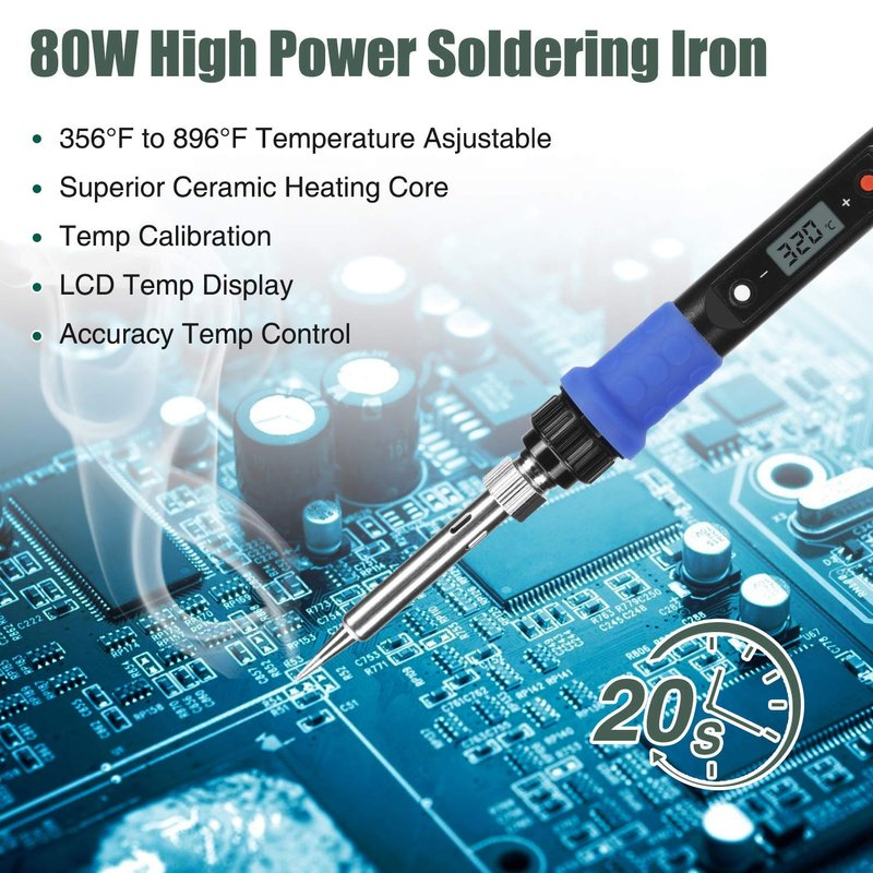 Soldering Iron Kit, 80W 110V LCD Digital Welding, 356-896℉(180-480℃), Portable Adjustable Temperature Soldering Kit, for Metal, Jewelry, Electric Repairing, DIY