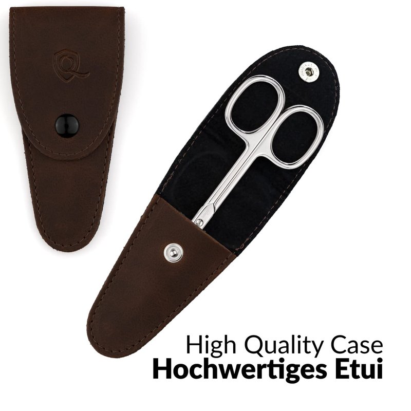 Color: brown tower point cuticle Solingen Scissors - tower point cuticle Manicure Scissors Germany - Curved Blade, Nail Scissors Germany - Pedicure Beauty Grooming Kit for Nail, Eyebrow, Eyelash, Dry Skin - Nail sicssors ----------------EXTRA SHARP: Produced and hand sharpened in Solingen, Germany, for a lifetime of precision cutting ----------------CURVED TIP design enables cutting extremly precise by any angles and shapes - also for grooming ----------------MULTI-PURPOSE for cutting tower point cuticles and finger nails or grooming eyebrows, eyelash and beards ----------------BEAUTY CARE TOOLS from marQus for professional manicure and pedicure are made of high-density steel ----------------HANDY CASE: The elegant leather protective case is very convenient - great for travel or home
