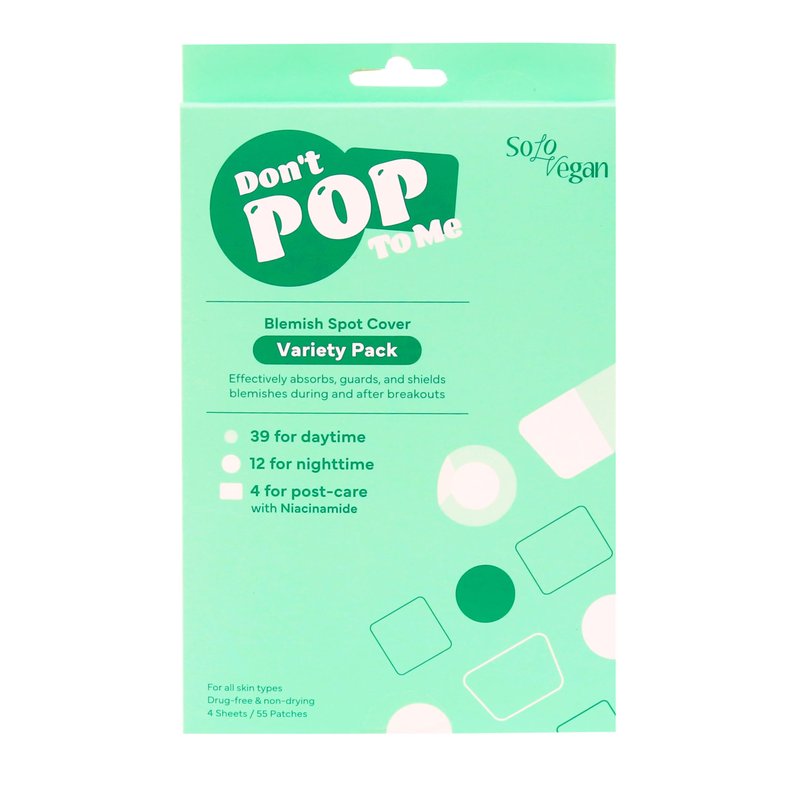 SoloVegan Mild Exfoliating Toner Pads, Serum, Blemish Patch, Cleansing Gel - Korean Skincare (1, 55 Count Blemish Patch)