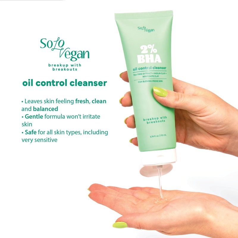 SoloVegan Mild Exfoliating Toner Pads, Serum, Blemish Patch, Cleansing Gel - Korean Skincare (1, BHA Oil Cleanser)