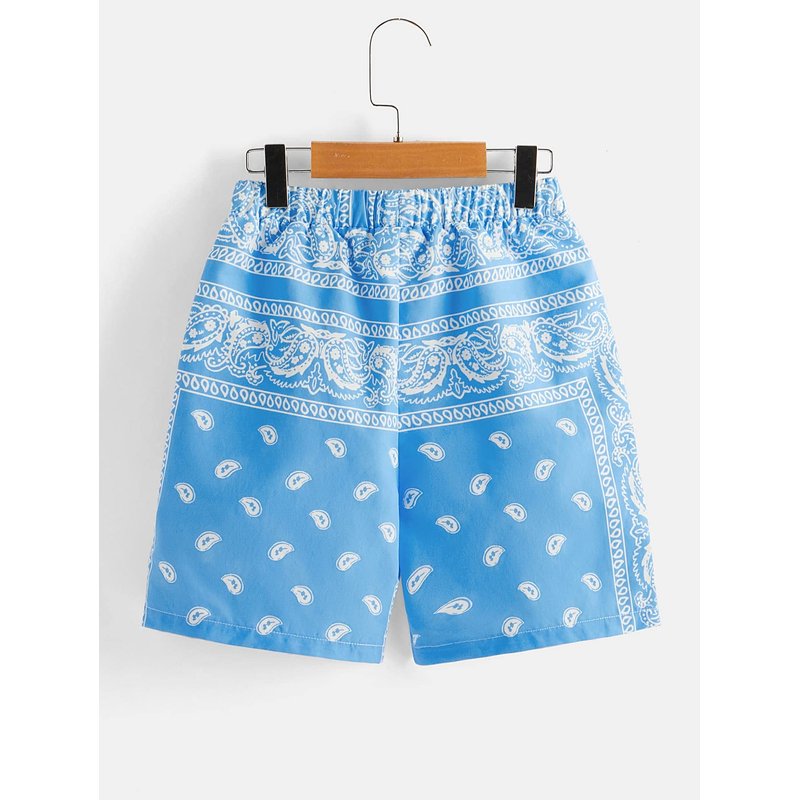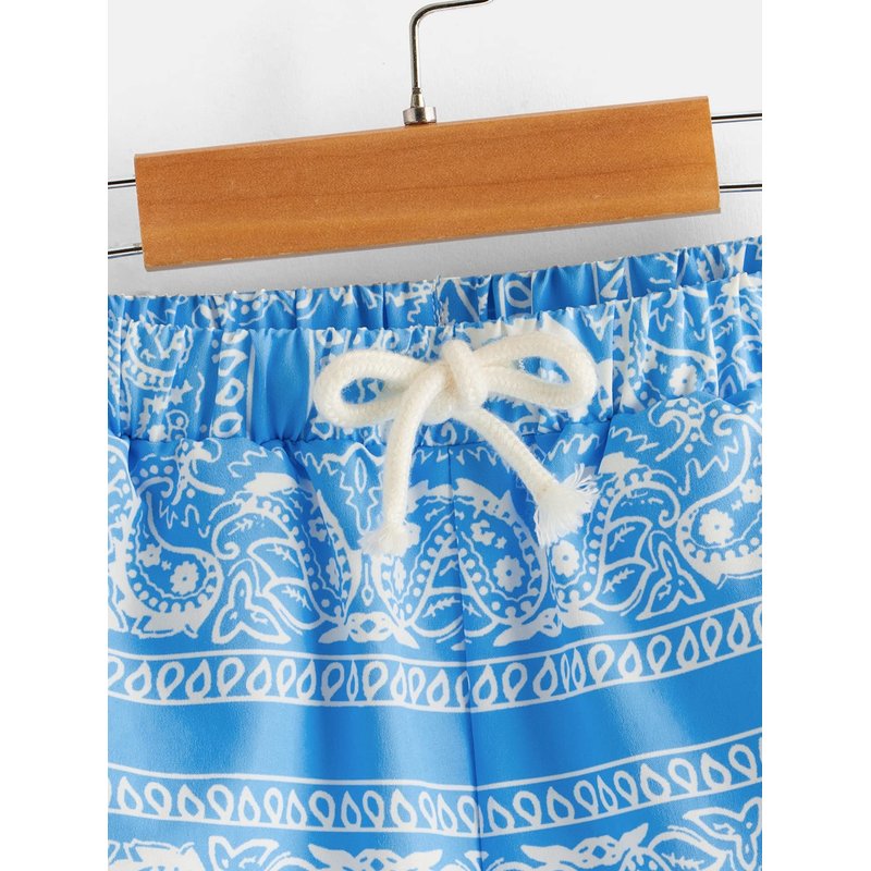 - Feature: Elastic waist, high waist, paisley print, drawstring, summer shorts, fashionable
