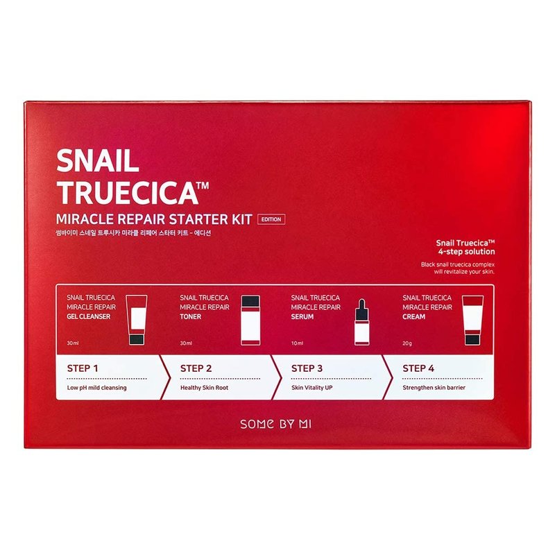 SOME BY MI Snail Truecica Miracle Repair Starter Kit/Toner 1.01Oz, Serum 0.33Oz, Gel Cleanser 1.01Oz, Cream 0.67Oz / Damaged Skin Solution for Sensitive Skin/Facial Skin Care Set
