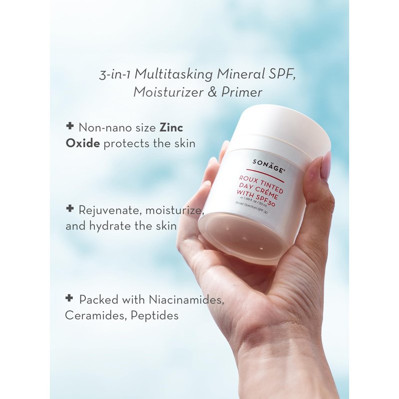 Sonage Roux Tinted Day Creme with SPF 30 | Natural Lightweight Mineral Sunscreen with Zinc Oxide | No Whitecaste | Ideal Under Makeup