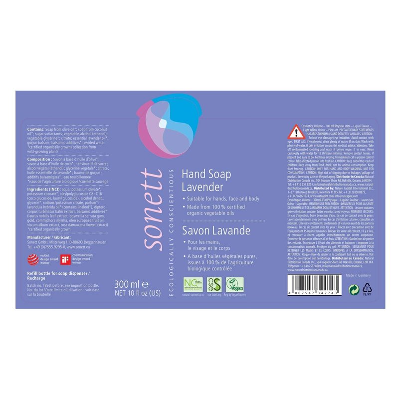 Sonett Organic Hand Soap Citrus, Lavender, Sensitive, Calendula, Rose and Foam Soap, 1 Count and 6 Count (Lavender, 1 Count)