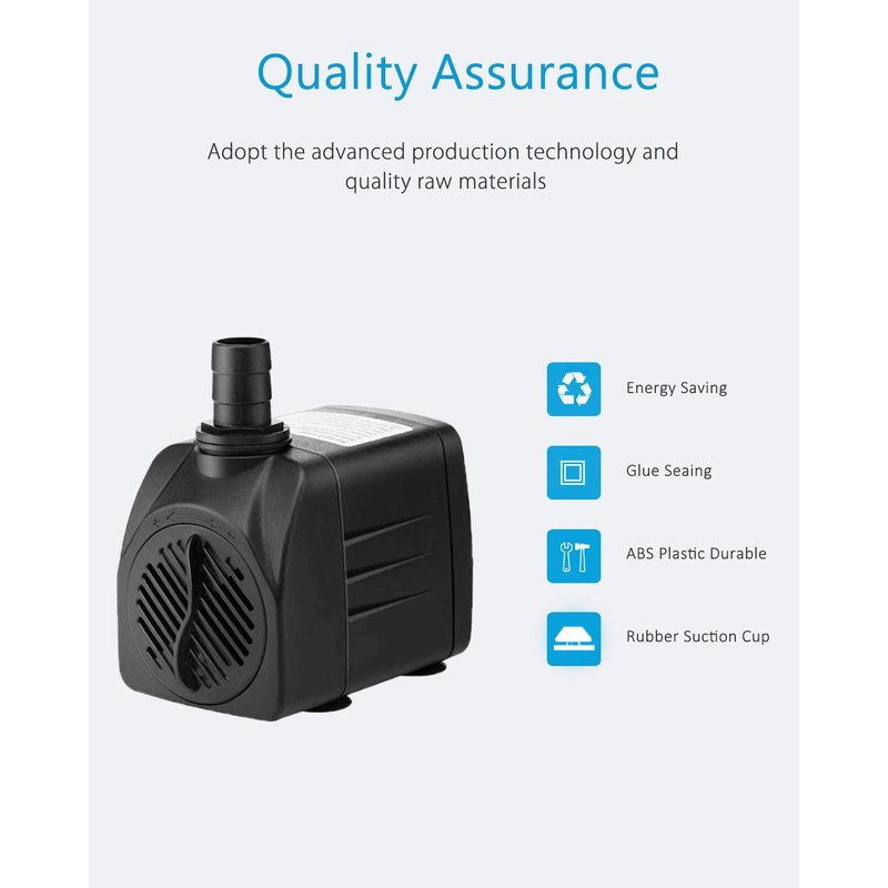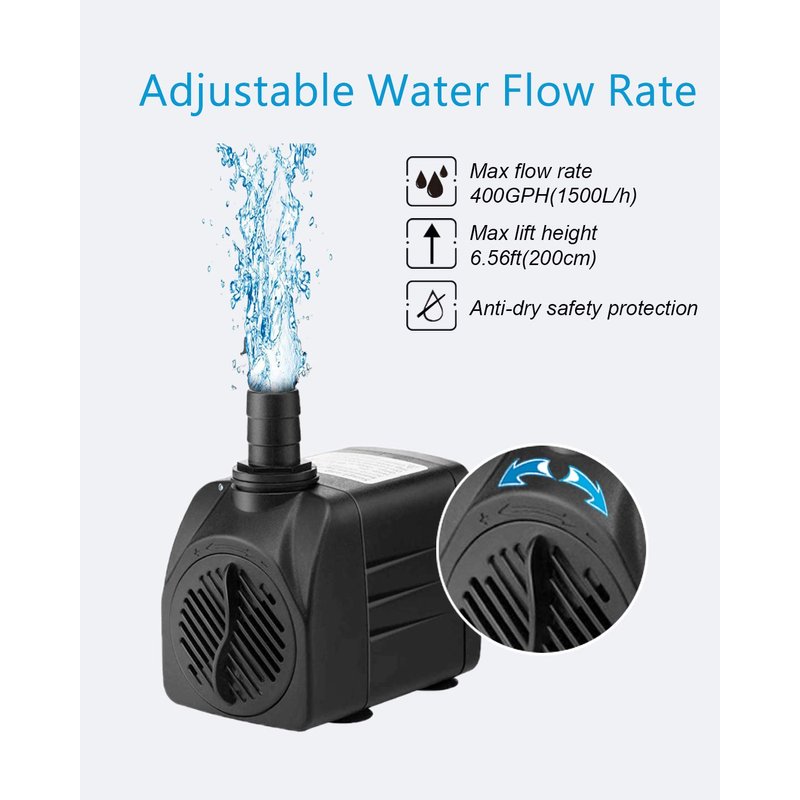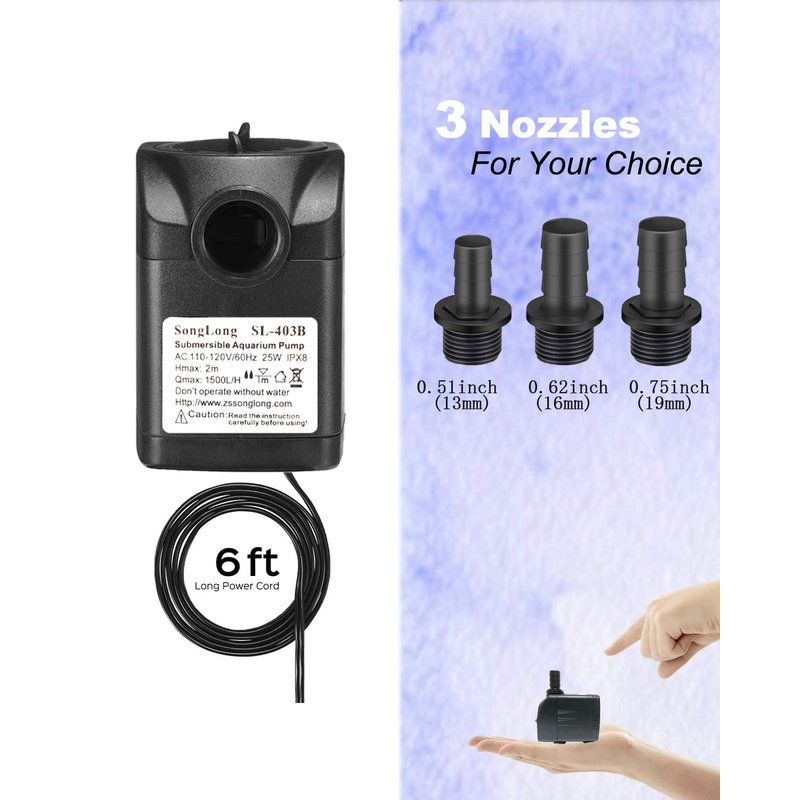 SongLong Submersible Pump 400GPH Ultra Quiet with Dry Burning Protection 6.5ft High Lift for Fountains, Hydroponics, Ponds, Aquariums & More……