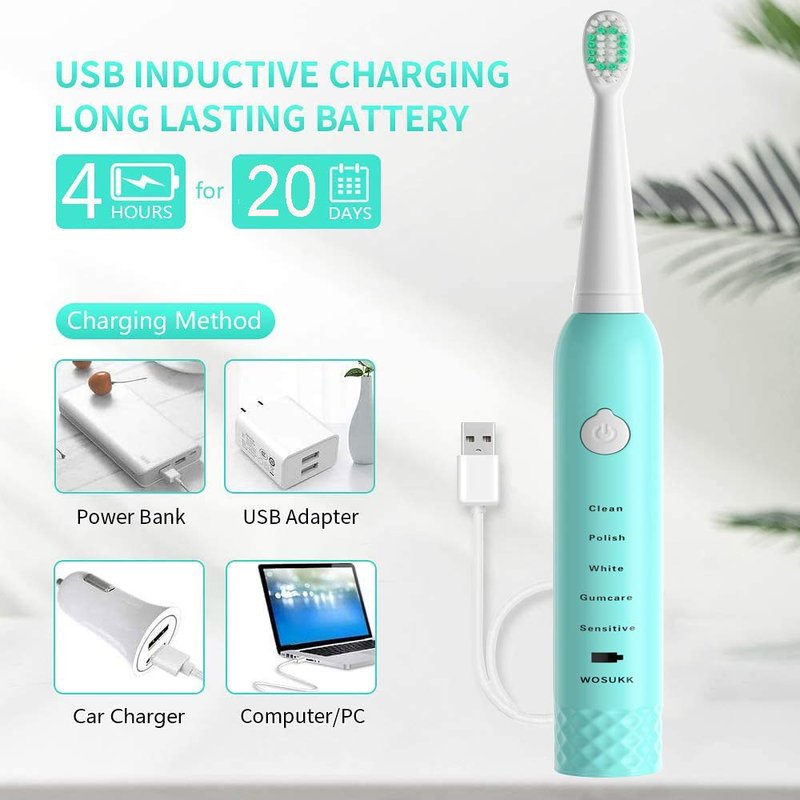 - Long Battery Life - As portable travel electric toothbrush, 1 time charge could last for 20 days regular use. Rechargeable toothbrush compatible with any charger or equipment with a USB port, automatically cuts off power after full charge. Please charging this smart electric toothbrush before a short journey, or pack the cable when you are in long journey.