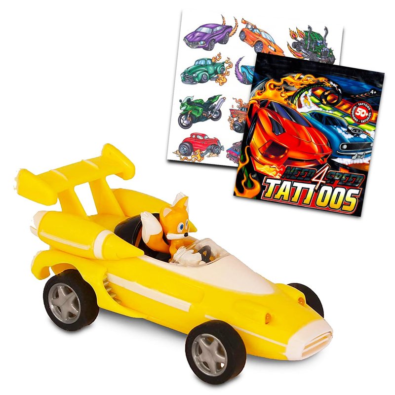 - Officially licensed Sonic the HedgehogTails pull-back racer set for boys and girls alike also includes temporary tattoos.