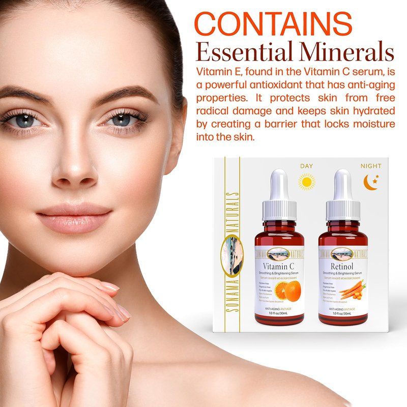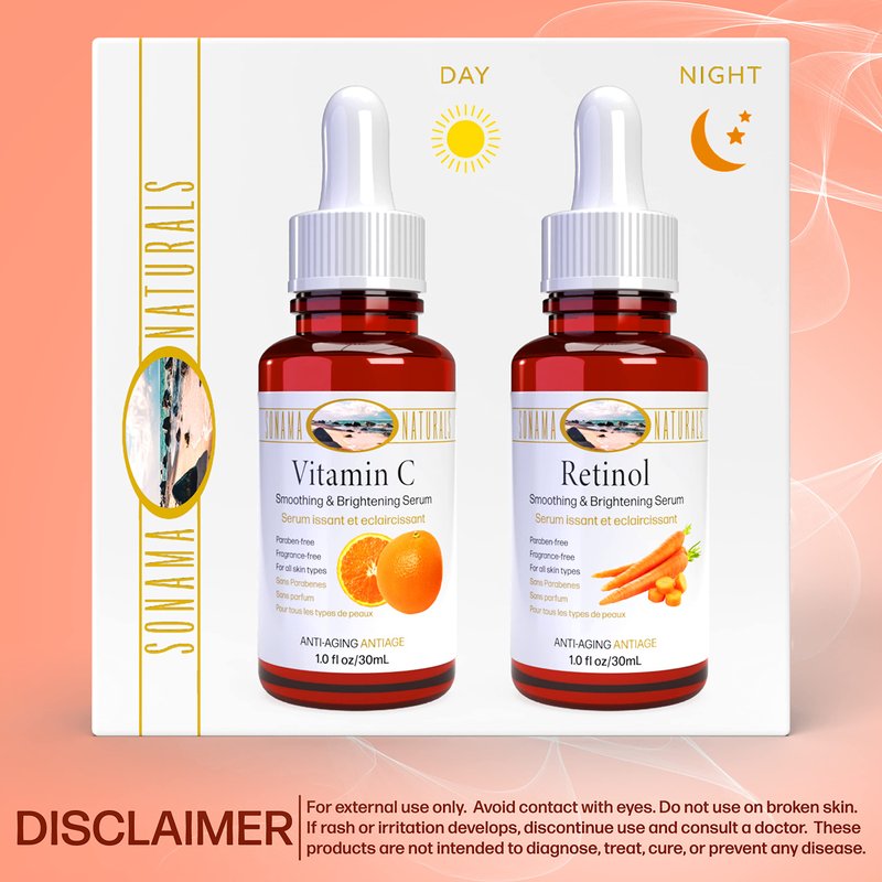 Sonoma Naturals Vitamin C and Retinol Serum for Face, 1 oz. two-pack | Day & Night Kit | Smoothing Natural Anti-Aging Formula | Facial Serum for All Skin