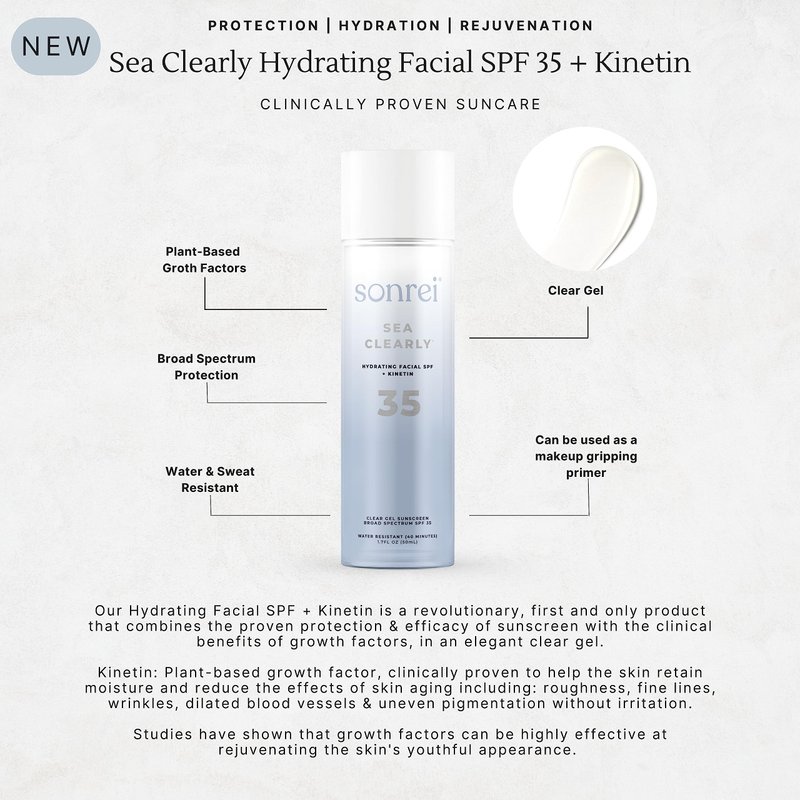 Sonrei Sea Clearly Hydrating Facial SPF 35 + Anti-aging Growth Factor Clear Sunscreen Gel & Primer | Broad Spectrum UV Protection | Water Resistant, Vegan, and Reef Safe | Non-greasy (1)