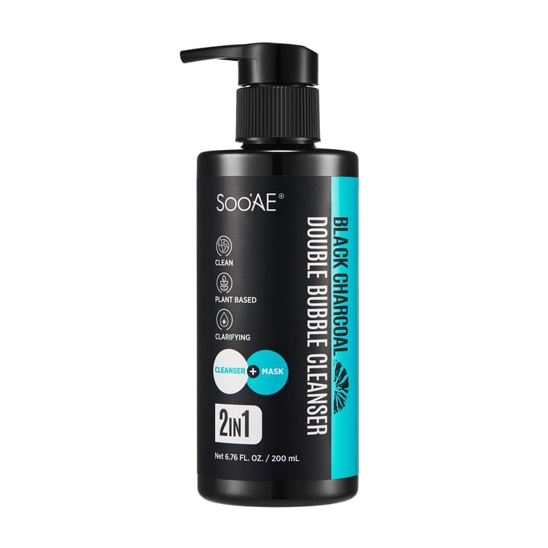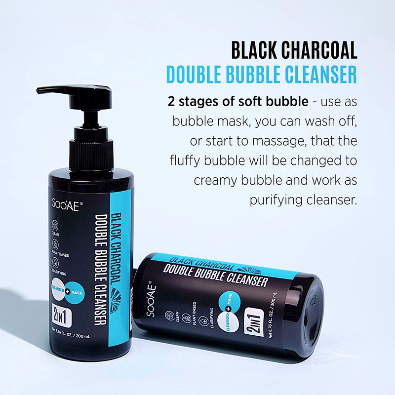Soo'AE Black Charcoal Double Bubble Mask Cleanser -2 𝗶𝗻 1 𝗢𝘅𝘆𝗴𝗲𝗻 𝗕𝘂𝗯𝗯𝗹𝗲 𝗠𝗮𝘀𝗸 𝗮𝗻𝗱 𝗙𝗮𝗰𝗲 𝗪𝗮𝘀𝗵 Cleansing Foam Double Cleanse for Men and Women 200mL