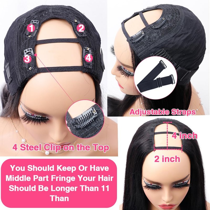 - ✤【Friendly & Easy to Take】Straight U Part Wig Human Hair,Upgrade U Part Wig,Breathable & Comfortable. Easy and quick to install. no smell, tangle-free and shedding free. Suit your natural hair wear