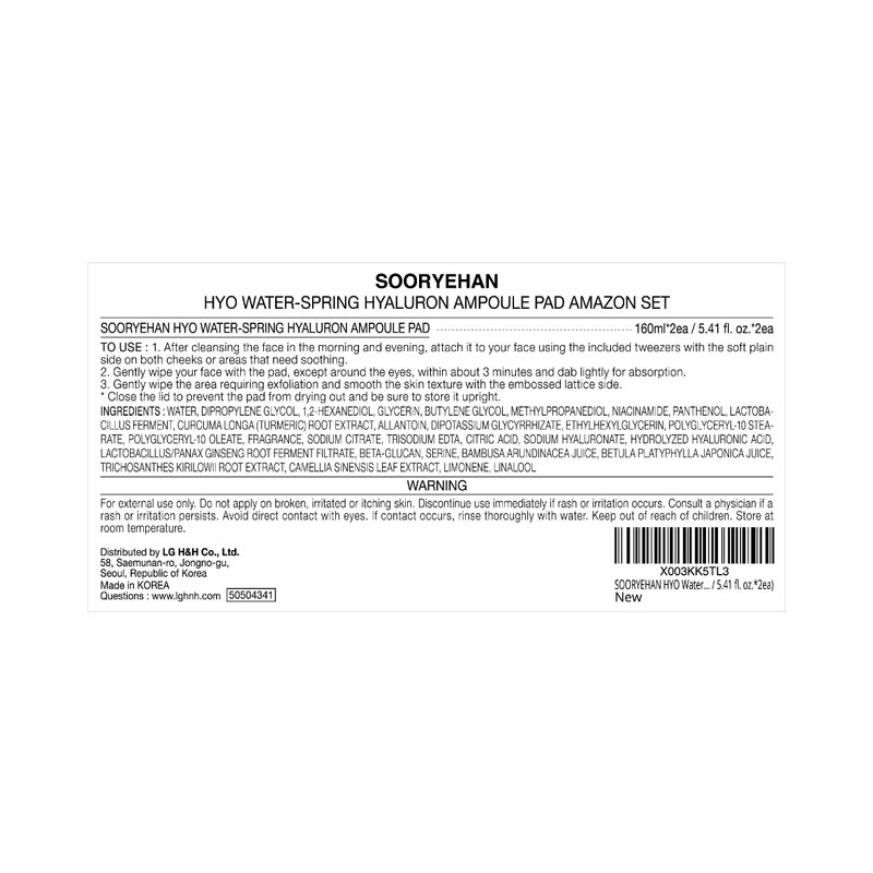 SOORYEHAN HYO Water-spring Hyaluron Ampoule Pad