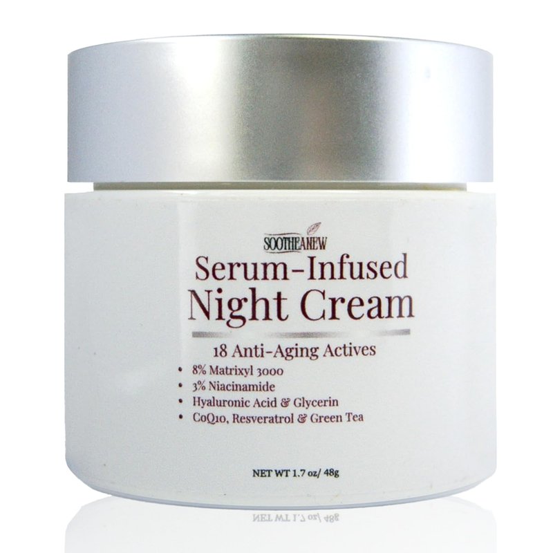 - SootheAnew's Serum Infused Night Cream combines the power of Four Serums to make your Anti Aging Night time Routine Simple and Easy: