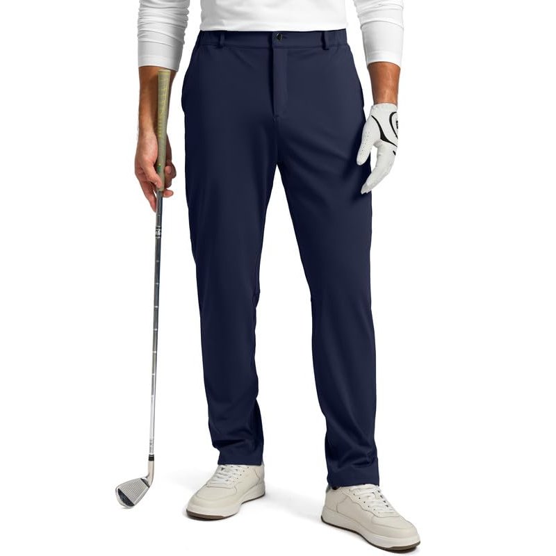 Soothfeel Men's Golf Pants with 5 Pockets Slim Fit Stretch Sweatpants Casual Travel Dress Work Pants for Men (Navy, L)