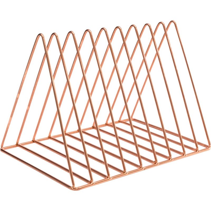 Sooyee 9 Slot Rose Gold Magazine Holder,Desktop File Sorter Organizer Triangle Bookshelf Decor Home Office