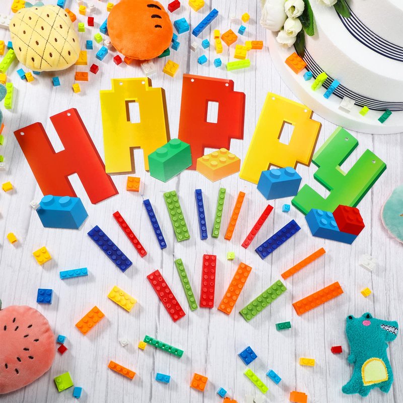 - Meticulous design: the party banner is the integration of blocks and letters, and the block shaped birthday candles for cupcakes are designed with building block theme, which will attract others' attention