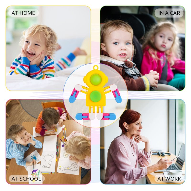 - 【3 IN 1 FIDGET SPINNING TOYS】You will get 24 pieces colorful 3 in 1 sensory fidget toys in one package. This sensory fidget toy with deformable design has wacky track leg, spinning body and simple dimple on head, can be changed into various shapes according to your imagination and hold the center body to rotate, and press the dimple on head to make a satisfied popping sound. Also you can hang them as key chain.