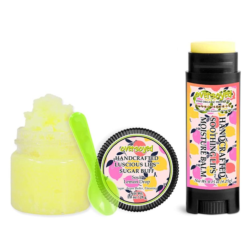 Sour Lemon Drop Soothing & Luscious Lips by OverSoyed Exfoliator & Chapped Lip Repair Lip Care Combo | Artisan Handcrafted to Order Tangy Citrus Sour Lemon Candy Lime Pineapple Flavored Exfoliating Sugar Lip Scrub & Lip Moisturizer Balm Gift Set