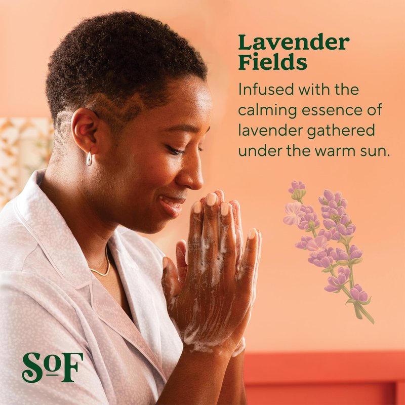 - FRAGRANT LIQUID SOAP Infused with the scent of sun-lit lavender fields; freshly-crushed lavender leaf and wildflowers are blended with shimmering greens, wild herbs and fresh woods and accented with sea salt-enriched Mediterranean air. Our Lavender Fields Hand Wash will transport you to the South of France… bon voyage!