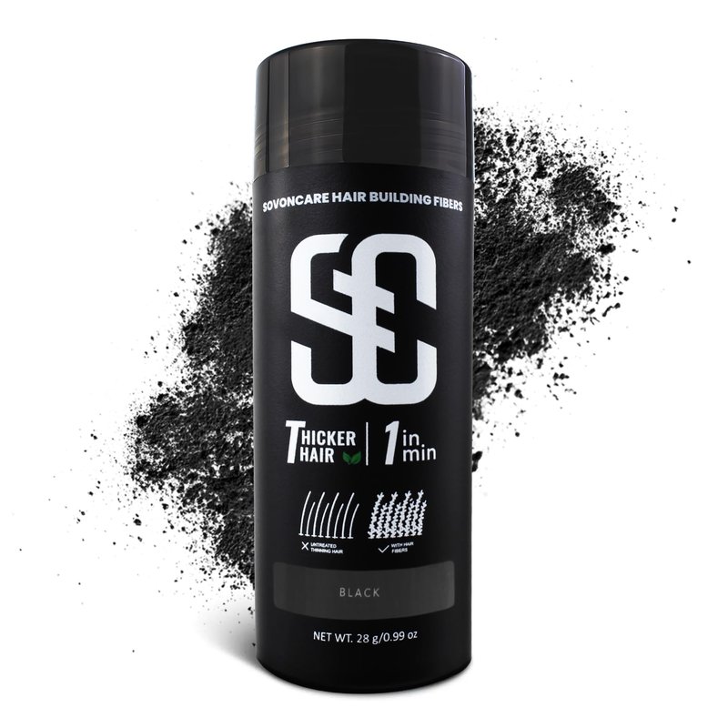SOVONCARE Hair Fibers for Thinning Hair, Black Hair Building Fibers for Bald Spots Undetectable & Natural, Conceals Hair Loss, Fill In Fine Hair Powder Hair Thicker Instantly for Women & Men 28g