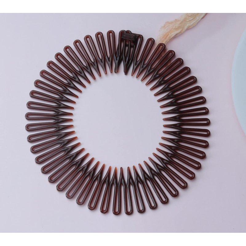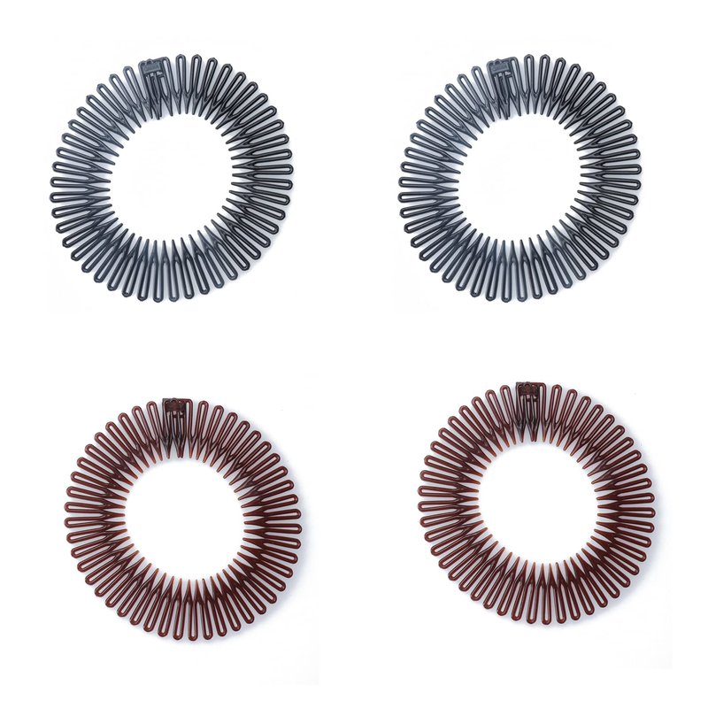 Sowaka 4 Pcs Circular Stretch Comb Plastic Black Brown Circle Spring Headband Flexible Hair Wrap Holder Hair Comb for Women Girls Outgoing Sports Hair Accessories (Round-black and brown)