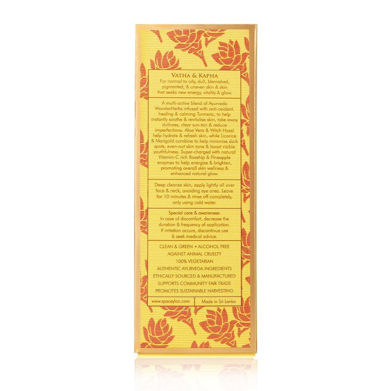 A multi-active blend of Ayurveda WonderHerbs infused healing & and calming Turmeric, to help instantly soothe & and revitalise skin, take away dullness, clear sun tan & and reduce imperfections.