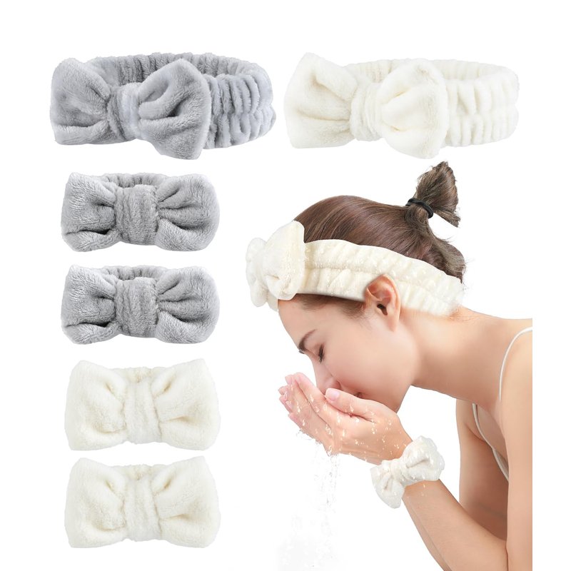 - Multi Purpose Headband and Wristband: The bow design on the headband and wristband can be removed, giving you a small towel, The spa headband and wristband set is reusable and machine washable, easy to wear and clean.Face washing headband and wristbands can be applied on most daily occasions, such as skin care, makeup, housework, fitness, birthday spa party and sleepover party, etc.