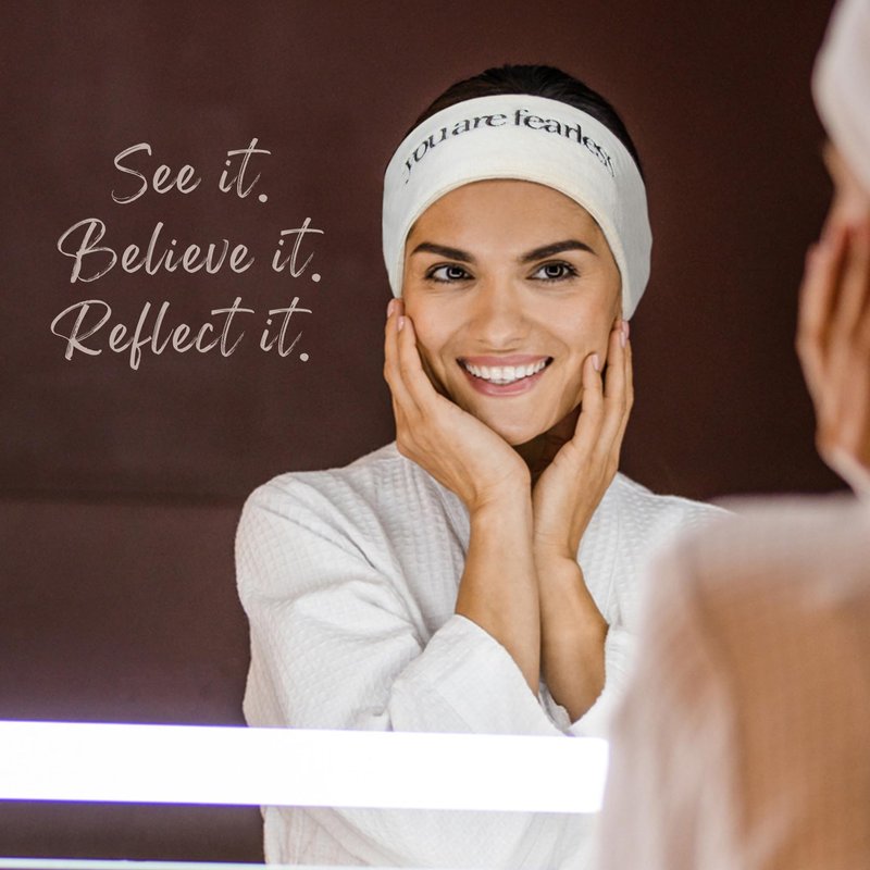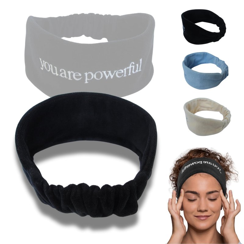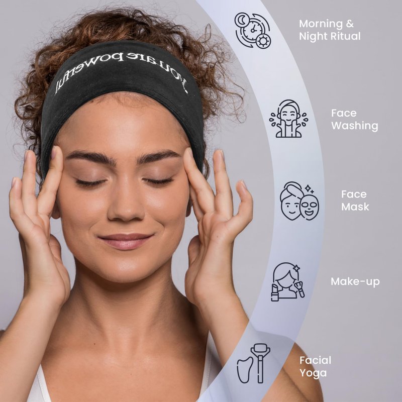 - A TRUE SELF-CARE ACCESORY. This headband not only keeps your hair dry and away from your face while doing your favorite beauty ritual, it also serves as a powerful tool for mindfulness while looking in the mirror.