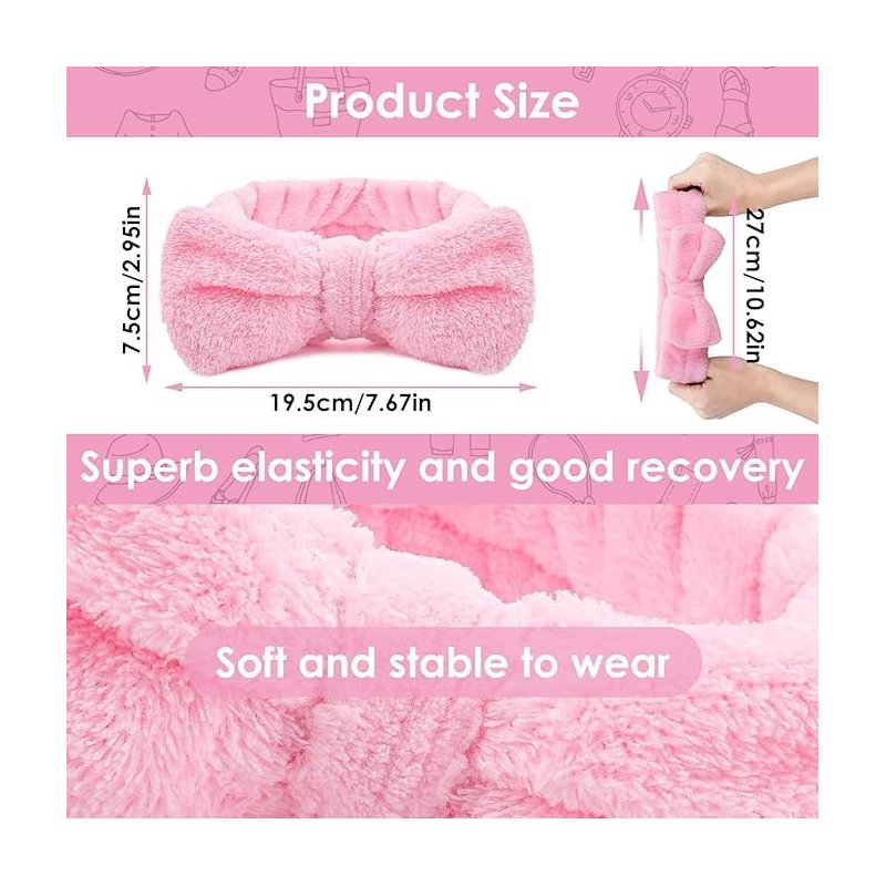 This is a high quality headband designed for facial cleaning, suitable for most people. It is made of elastic fabric, which is very soft and comfortable to wear. The headband has a good elastic force and is easy to wear and take off. It is suitable for women and girls to wear when washing their faces, removing makeup, taking a bath, or doing sports. The headband is designed with a beautiful bow knot, which is very cute and stylish. It is a great gift for your friends and family.