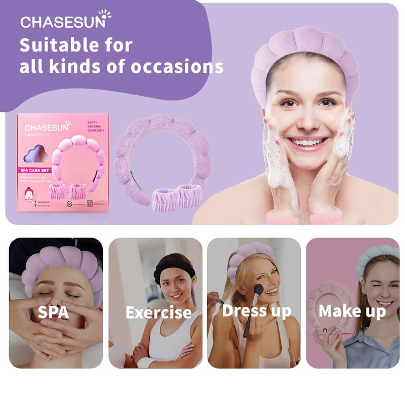 - 【Widely used】Spa face wash headband is cute, comfortable,soft puffy and doesn't slip off when washing face and headband keeps makeup and water away.Light weight, not too tight on your head, doesn't leave a hair crease.